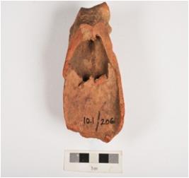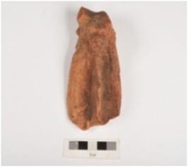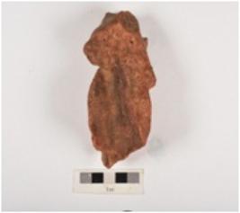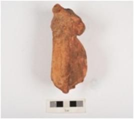 | Description / विवरण | Fragment of a terracotta bull figurine with an elaborate dewlap, both horns are broken, oval shaped eye with a hole, eroded mouth. Medium fabric, well baked and traces of red slip on surface. |