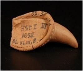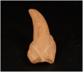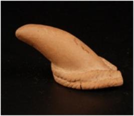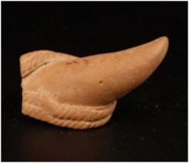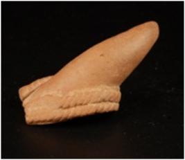 | Description / विवरण | Terracotta tusk of an elephant. The applied cord like thing encircling the tusk may indicate its root- sheath or string fastened with the tusk in applique work. |
