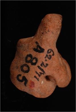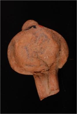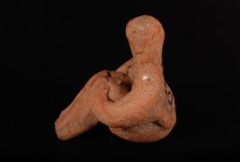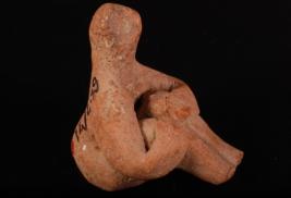 | Description / विवरण | A handmade fragment of a terracotta seated male figurine in yogie posture with raised legs and the knees closely held with the body by hands, face is round resembling beak of a bird and surface is treated with red colour slip. |