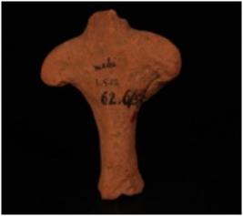 | Description / विवरण | Handmade terracotta human figurine with round base. Head is missing and right hand is broken from the shoulder. Fingers are marked with incised lines. |