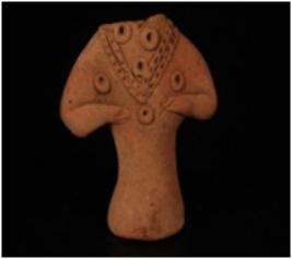 | Description / विवरण | Handmade terracotta figurine with round base in akimbo position. It is adorned with incised necklace and circles on the chest which have been made by applique method and fingers are marked with incised lines. |