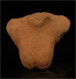 | Description / विवरण | Fragment of terracotta bust of a female figurine and prominent breasts. |