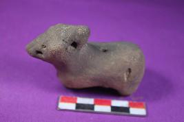 | Description / विवरण | An unidentified animal figurine having snout, prominent hump, broken short stumpy legs and rough surface. |