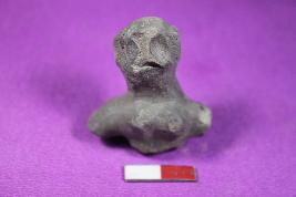 | Description / विवरण | A fragment of human figurine having broken arms, pinched out nose and rough surface. |