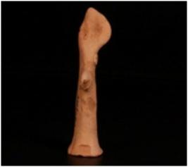 | Description / विवरण | Hhandmade, terracotta human figurine. It is placed on a cylindrical pedestal, pinched nose and pierced eyes, neck is adorned with two necklaces made by applique method. While one necklace and a series of pierced beads and the other is designed with two large beads. |