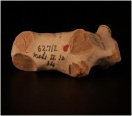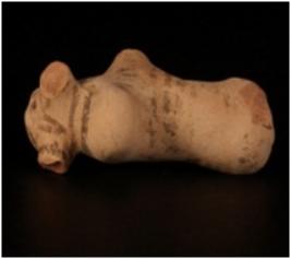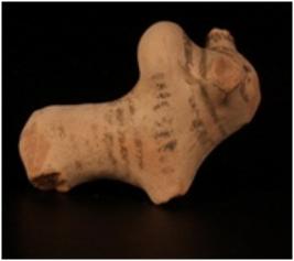 | Description / विवरण | Fragment of a terracotta humped bull figurine, horns and snout is partly broken. figurine was treated with a slip in buff colour. The body portion is decorated in red colour. Hump is prominent and tail is intact. |
