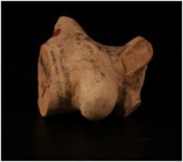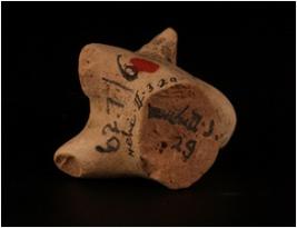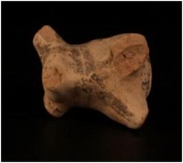 | Description / विवरण | Fragment of a terracotta humped bull figurine .The horns are broken. Hump is prominent, treated with a slip in buff colour. The neck and body portion are decorated with geometric designs in circles and well baked. |