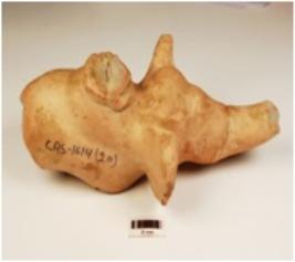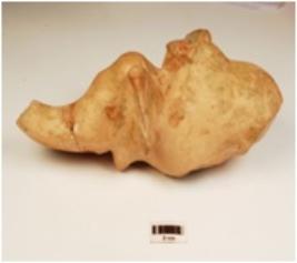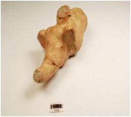 | Description / विवरण | Fragment of Terracotta elephant figurine, treated with slip in red colour and hind and forelegs broken, broken and mended truck and traces of elephant rider on waist. |
