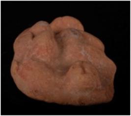 | Description / विवरण | A terracotta female torso prominent breast and incised fingers. |