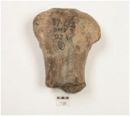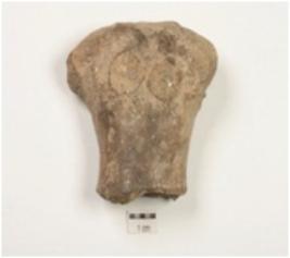 | Description / विवरण | Fragment of a bust of a female figurine, missing head, breasts, arms and broken from waist and treated with dark red slip. |