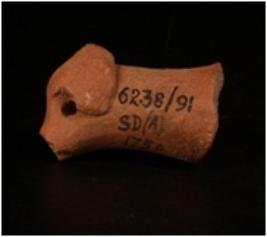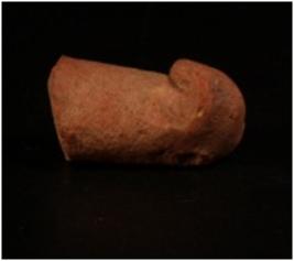 | Description / विवरण | Head portion of a handmade terracotta ram figurine, snout is partly broken, eyes were shown as pinholes, ears are incurved, surface treated with a slip in red colour and well baked. |