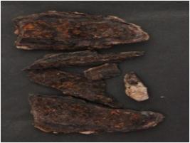 | Description / विवरण | Trench E-3 Eastern Southern Half , LxB-D 5.10 mtrs x 10 mtrs - 4.53 mtrs at XVII, Stratum Layer 5 There are many pieces of iron. All are of different shape and size. Hard patina with heavy dust and dirt deposited on it. Appearance is of dark brown colour. |