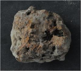 | Description / विवरण | Trench SGL-2 D, Length- XIX.35 x Breadth- 1.55 m , Depth-3.15 mbs from XX1. Stratum-layer 14. This is an iron alloy. Almost turned to rust due to corrosion and acidic reaction. Surface is craggy and rough. colour is rusty brown. |