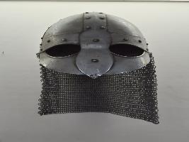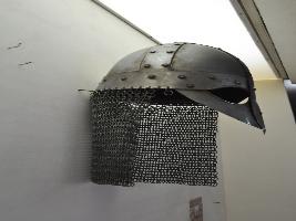 | Description / विवरण | It is a helmat made of iron. It may be used in war for defence mode.It has two part of it.It has some net design on back side for protection of the neck.The upper side has round shaped and also frame on front side it gives the protection of solider. |