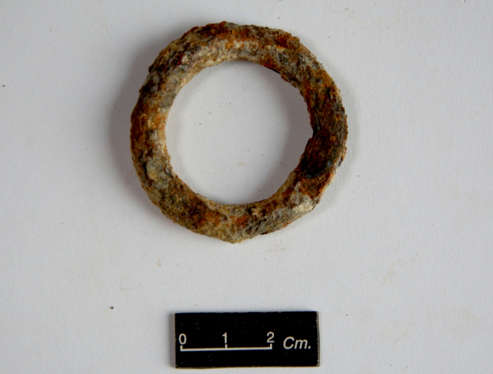 It is a ring made of iron in circular shape. The Surface is rusticated.No ornamentation can be observed on the surface.