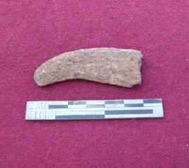 | Description / विवरण | An iron sickle having tapering at the top and slightly bent. |