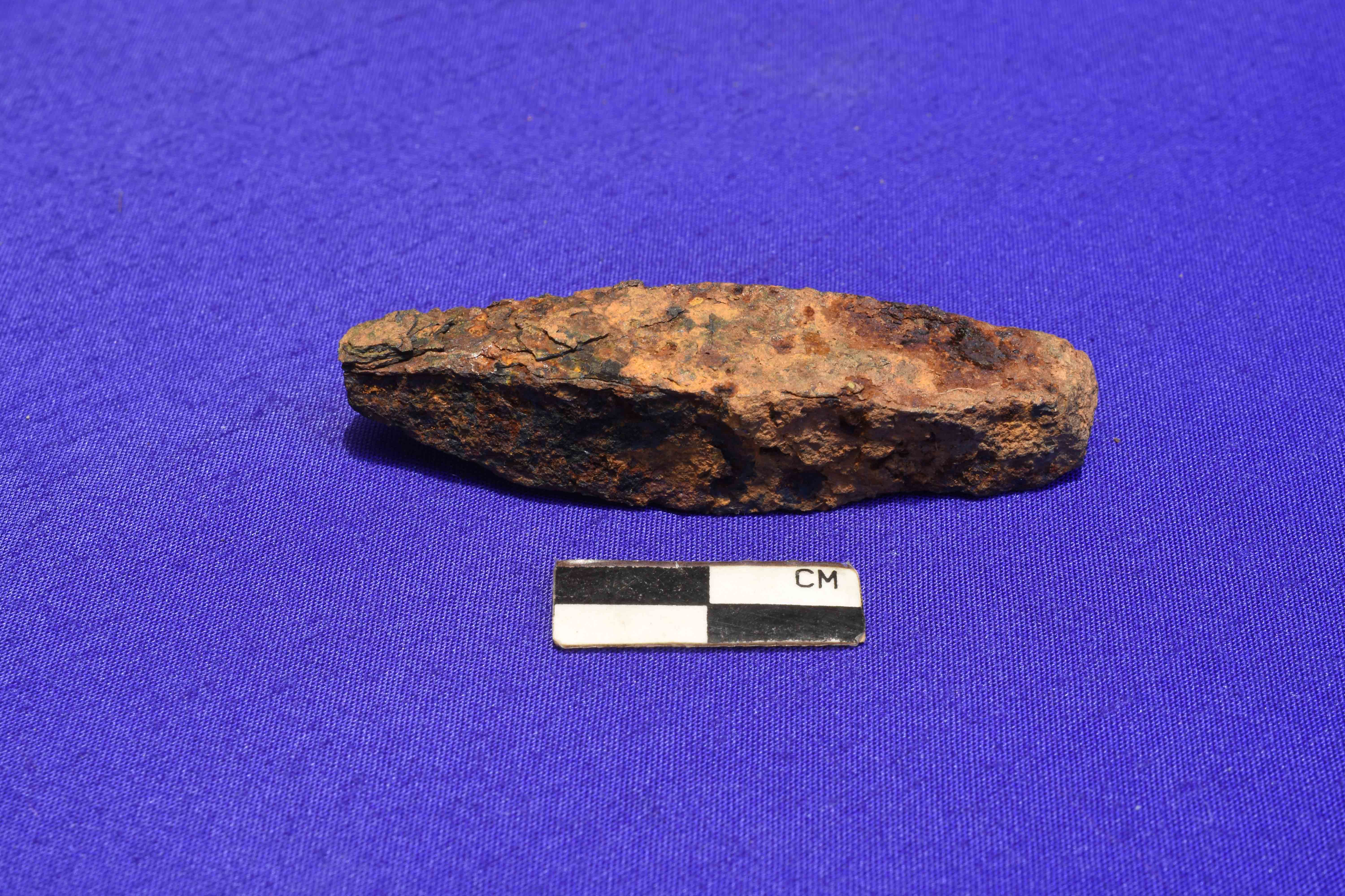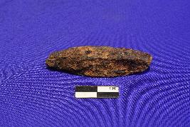 Long iron object having squarish section ,broad body at the middle and tampered ends .