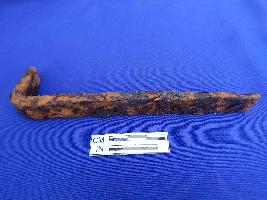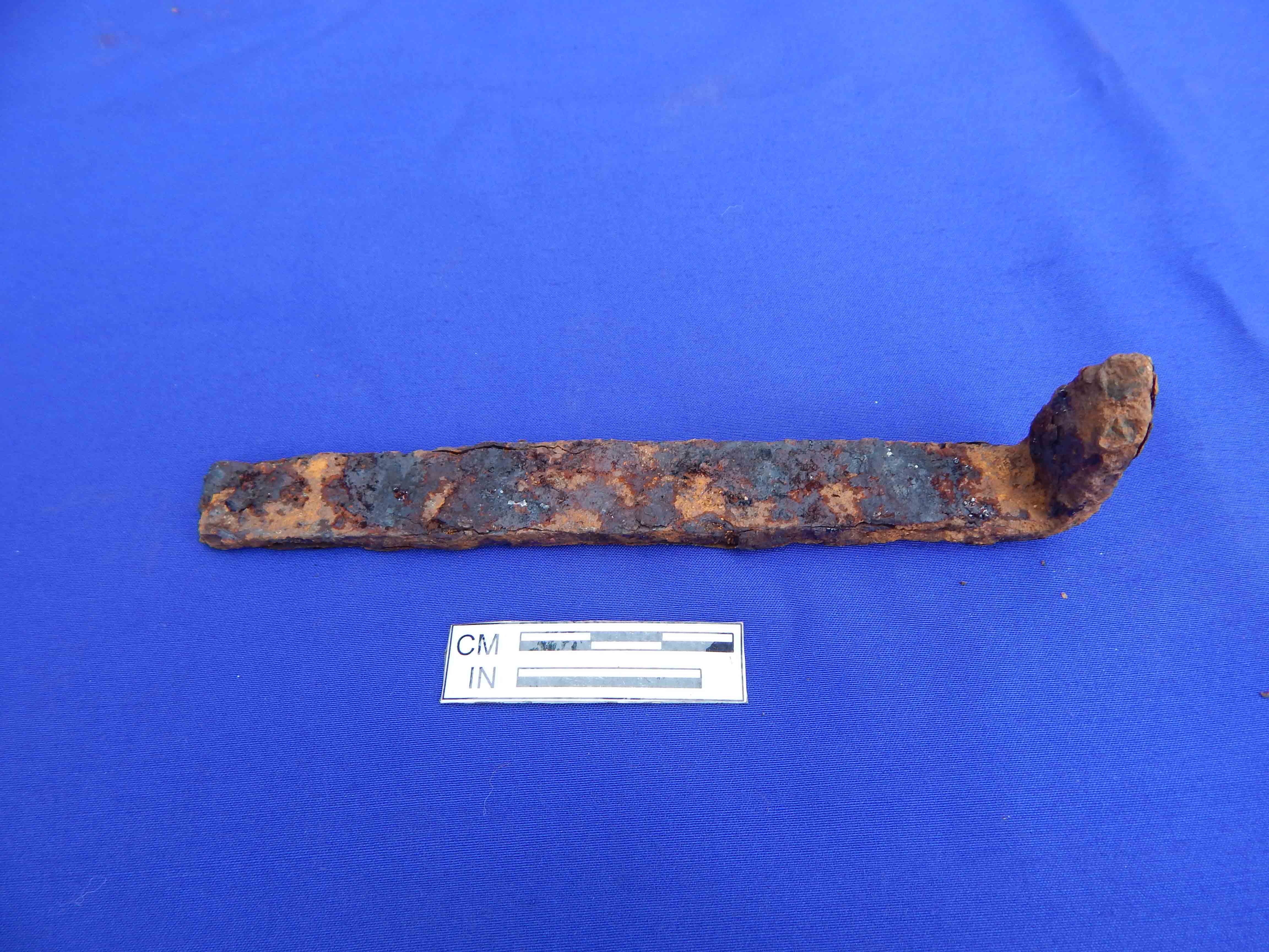 A heavily corroded iron clamp made of medium sheet of Iron. The clamp has squarish section.