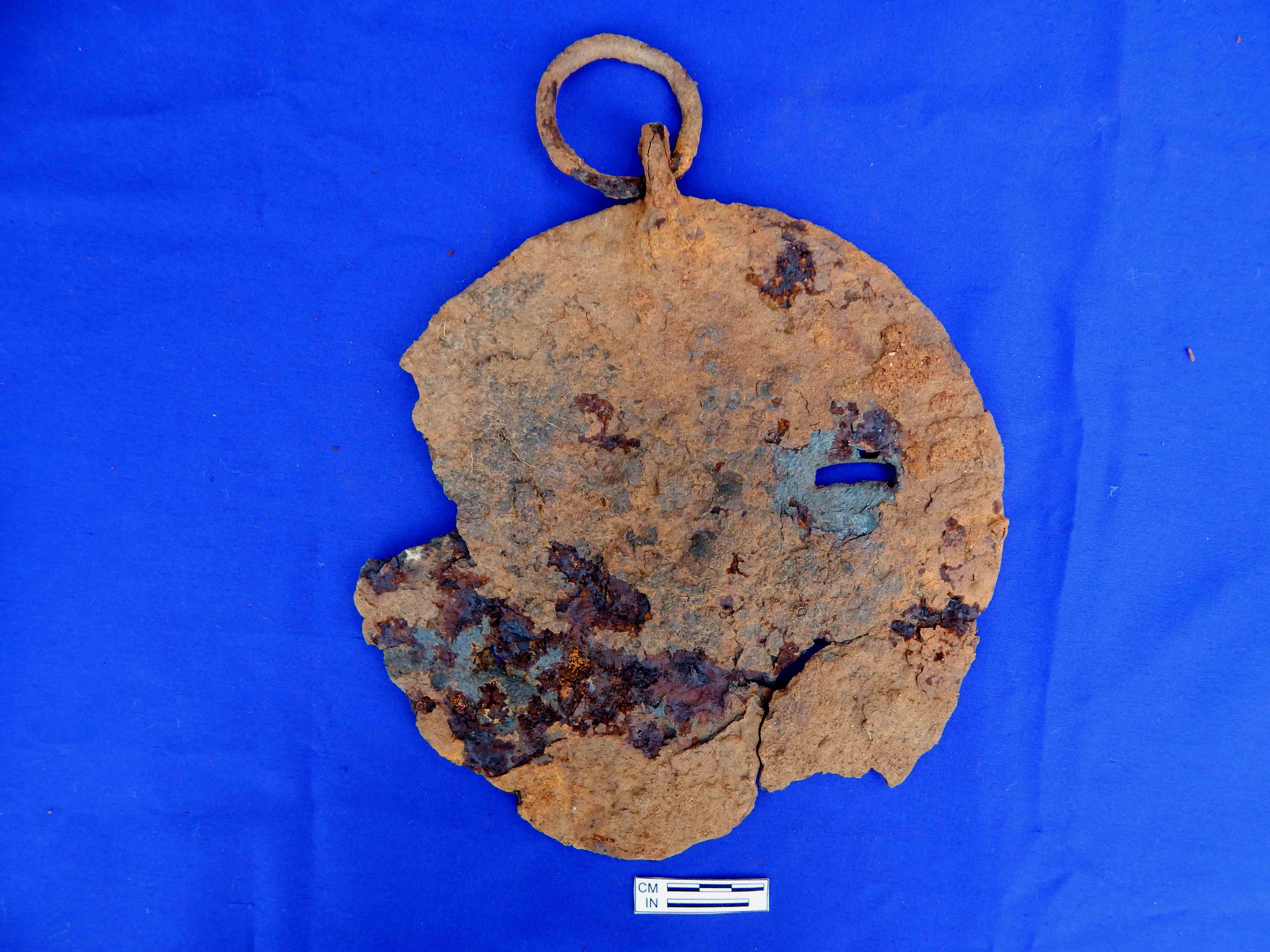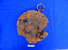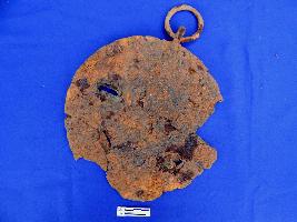 It is circular iron bell tied with a small ring of 4.5cm diameter.