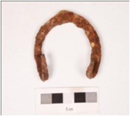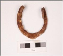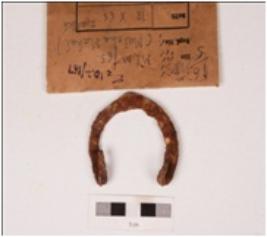 | Description / विवरण | An iron hook, probably used on the doors, inwardly curved at the ends. |