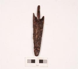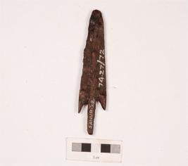 | Description / विवरण | An iron arrow head, top is pointed and sharp, intact head, crack on surface, surface is rusted and rough. |