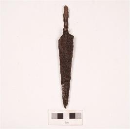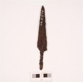 | Description / विवरण | An iron arrow head, head is broken, top is pointed and sharp, cracks on surface, surface rough and rusted. |