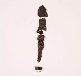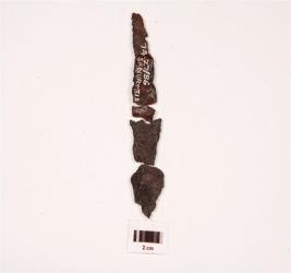 | Description / विवरण | An indeterminate iron object, broken in four piece, uneven surface and rusted. |