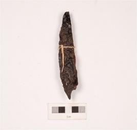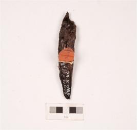 | Description / विवरण | A fragment of iron arrow head, one end is broken crack on surface and rusted. |