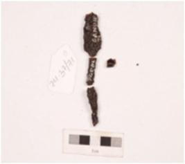 | Description / विवरण | A fragment of iron arrow head, pointed ends, surface is uneven and rusted. |