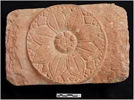 Side A- An eight petalled lotus having three levels- I - Outer side of medallion is circular. II - The petals are long broad is the middle with tips. fine petals - one big, two small and two tiny are seen is between the petals. III - The raised disc in the middle has eight anther lobes circular gynoecium. Side B- The circular outline of the lotus is divided into four quadrants, each quadrant is showing two petals and three sepals. The androecium gynoecium whorls are depicted by three concentic circle.