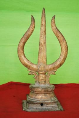 | Description / विवरण | Trisula is fixed on the square pedestal. The right corner of the image is in irregular shape. |