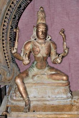 | Description / विवरण | Siva is seated on a triangular peetam. His right leg is folded and rest on the peetam. His left leg hanging and rest on the bottom of the peetam. Having four hands. The upper hands carry Mazhu and Deer where as the lower hands are showing the abhaya and varadha mudras. Wearing Jata makutam. |