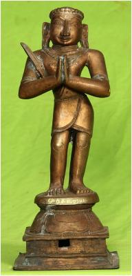 | Description / विवरण | Standing on padma peetam with anjali hastha posture. Wearing rudraksha bead garland on the head. A knife is found on the right shoulder. |