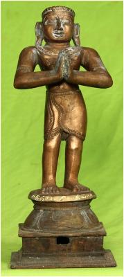 | Description / विवरण | Standing on padma peetam with anjali hastha posture. The decoration in the dress is significant. |