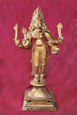 | Description / विवरण | Standing on Padma peetam with four hands. Upper hands carry Damaru and Pasam. The left hand holds Trisula and kapala. |