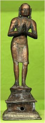| Description / विवरण | Standing on padma peetam with anjali hastha posture. Long ears. |