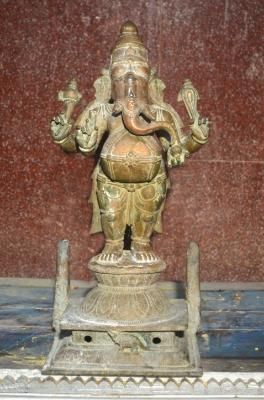 | Description / विवरण | Standing 4 hands- parasu, pasa, tusk and motaga, trunk touching the motaga. On the pedestal front there is a carving of a mouse. |