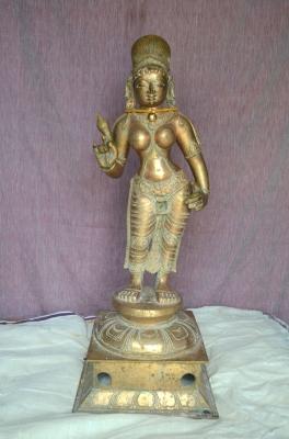| Description / विवरण | Standing in tribangha, jatamakuta, two hands right lotus left katyavalampitha. Devoid of kuja bandha having lower garments |