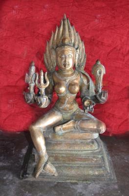 | Description / विवरण | Sitting in sugasana agora form, jwalla makuta- hands damaru, pasa, sula and kapala. Left leg folded and the right leg rest on the human head.Devoid of kujabandha |