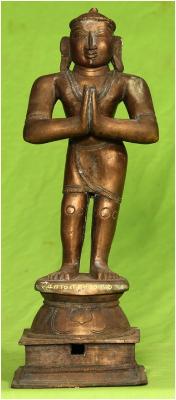 | Description / विवरण | Standing on padma peetam with anjali hastha posture. |