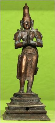 | Description / विवरण | Standing on padma peetam with anjali hastha posture. Wearing Girida makutam on the head. The mode of wearing dress is look like sculpture of Nayak period. |