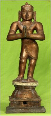 | Description / विवरण | Standing on padma peetam with anjali hastha posture. |