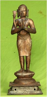 | Description / विवरण | Standing on padma peetam with anjali hastha posture. Uzhavaram is found on the right shoulder. The mode of wearing dress is significant. |
