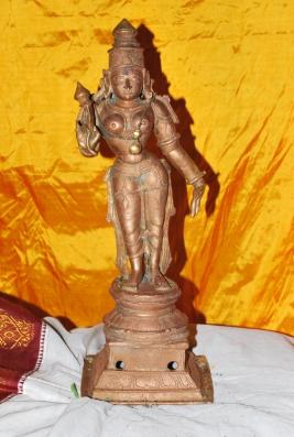 | Description / विवरण | Standing on padma peetam with two hands. The right hand carry a flower where as the left hand in lola hastha posture. |