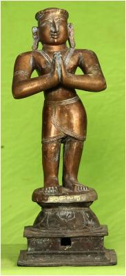 | Description / विवरण | Standing on padma peetam with anjali hastha posture. |