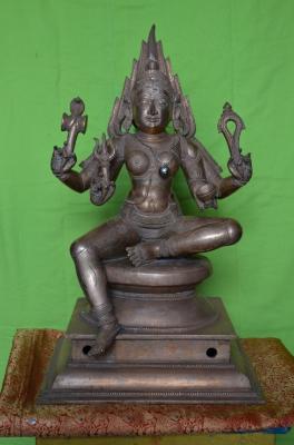 | Description / विवरण | Sitting on a padma peeda in lilithashana style. Having four hands. right side hand carry damuru with snake.left hand carry angusa and the other hand having a trisul and kabala. having a grita mukuta also projection agni praba mandal, more ornaments. |