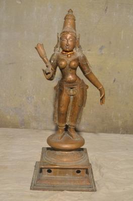 | Description / विवरण | Standing in tribangha.Karanta makuta, padre kundala, Devoid of kuja bandha 2 ahands right lola left lotus. |