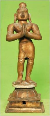 | Description / विवरण | Standing on padma peetam with anjali hastha posture. Bun shaped hair style is found on the head. |