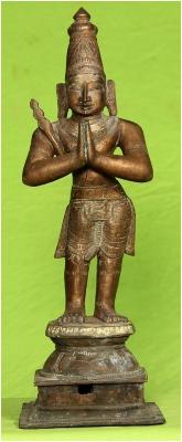 | Description / विवरण | Standing on padma peetam with anjali hastha posture. Vajram dagger weapon is found on the right shoulder. |