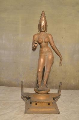 | Description / विवरण | standing in tribangha karanta makuta Devoid of kujabhanda 2 hands kataka and lola |
